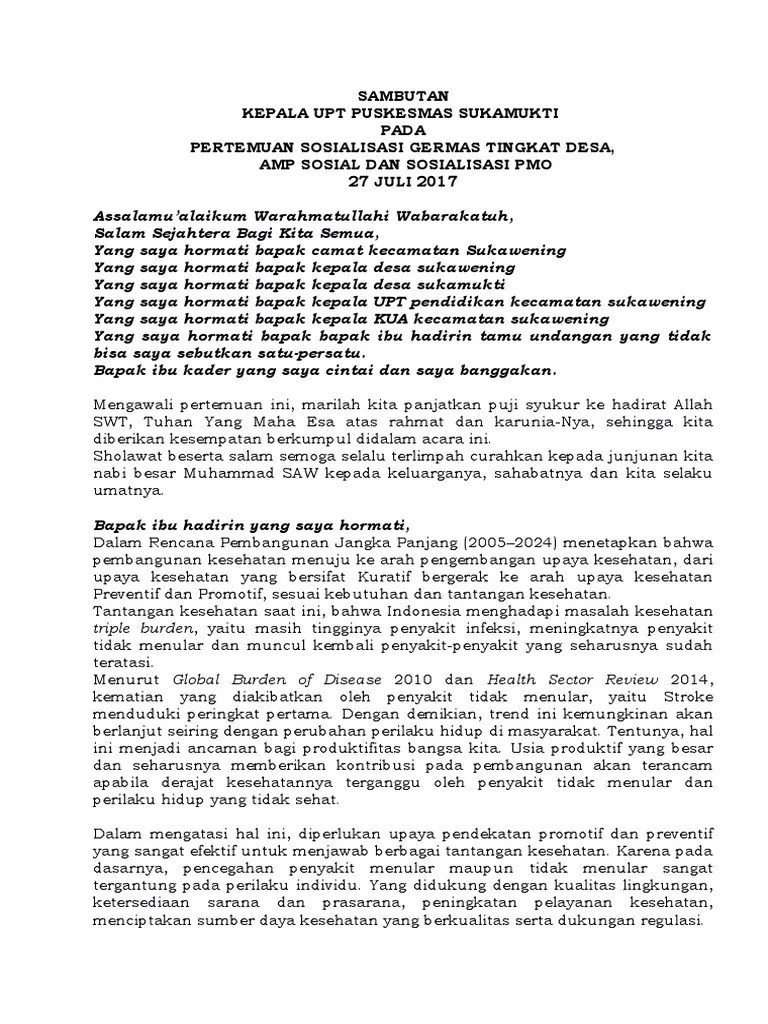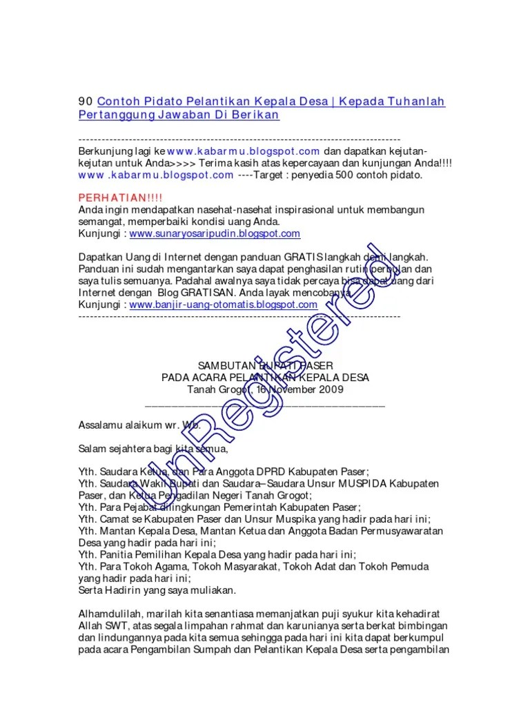 Pada resepsi syukuran pelantikan kepala desa tanggal 16 desember 2016. Puji syukur kehadirat allah swt, bahwasanya pelaksanaan pemungutan suara pemilihan kepala desa telah selesai dengan hasil pemilihan . Artikel ini berisi contoh teks pidato bahasa indonesia sambutan kepala desa yang baru terpilih secara singkat dan jelas. Naskah pidato kepala desa~pada kesempatan ini saya share contoh naskah pidato kepala desa yang bisa dipakai saat memberikan sambutan. Bupati pamekasan baddrut tamam menyampaikan sambutan pada acara pelantikan 72 kepala desa di mandhepa agung ronggosukowati pamekasan, . Sambutan kepala desa perdana amin jaya terpilih (alman ryansyah). Bapak kepala desa periode sebelumnya Ketua pkkw, ketua ppdi, ketua bpd, dan ketua panitia pilkades, serta undangan dan . Pesta demokrasi kecil kemarin yakni pemilihan kepala desa, merupakan proses yang banyak menyita waktu dan semoga itu semua menjadi amal ibadah kita sekalian .