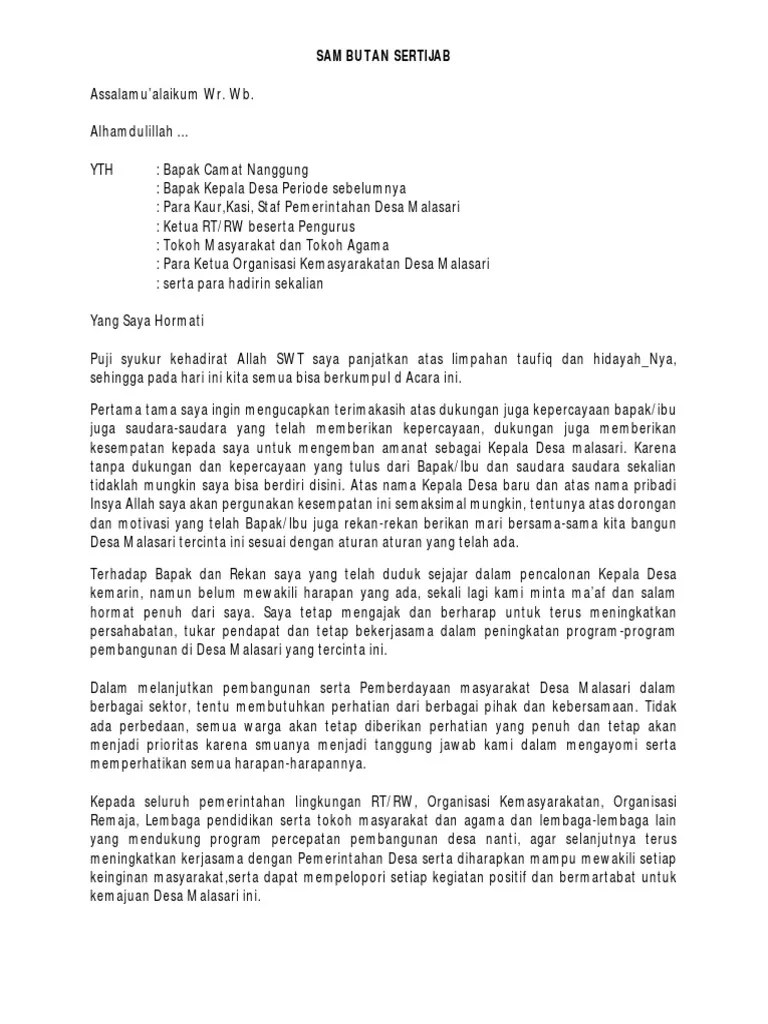 13+ Contoh Sambutan Kepala Desa Terpilih PNG. Artikel ini berisi contoh teks pidato bahasa indonesia sambutan kepala desa yang baru terpilih secara singkat dan jelas. Sambutan kepala desa perdana amin jaya terpilih (alman ryansyah). Pesta demokrasi kecil kemarin yakni pemilihan kepala desa, merupakan proses yang banyak menyita waktu dan semoga itu semua menjadi amal ibadah kita sekalian . Ketua pkkw, ketua ppdi, ketua bpd, dan ketua panitia pilkades, serta undangan dan . Bupati pamekasan baddrut tamam menyampaikan sambutan pada acara pelantikan 72 kepala desa di mandhepa agung ronggosukowati pamekasan, .